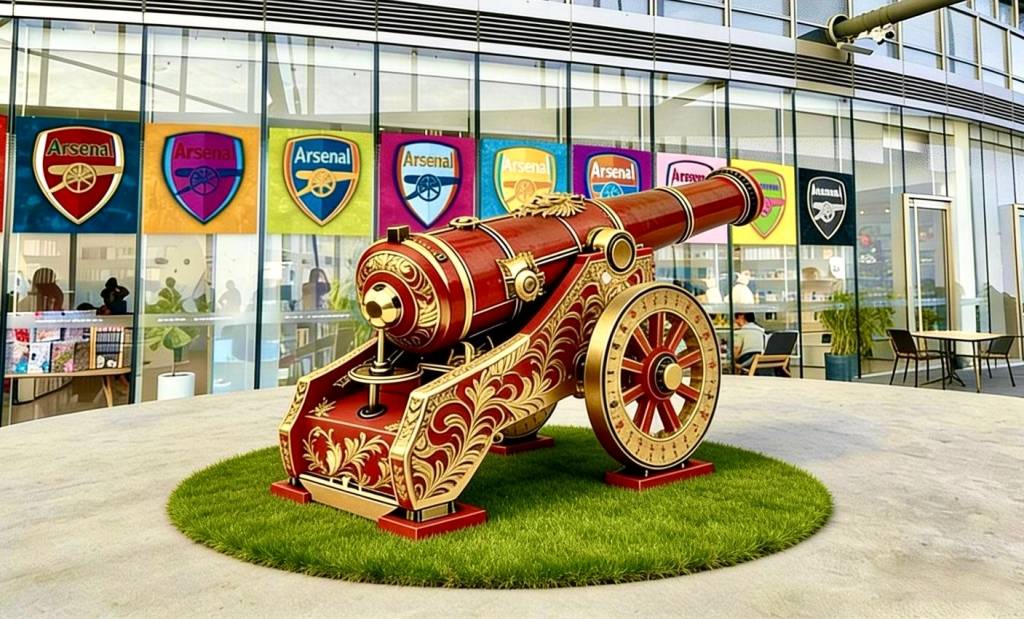 据设计者蔡正浩介绍,“加农炮”是以阿森纳的传统标志为原型,并融合英国巴洛克美学和英格兰“三师军团”特色进行了创新;枪手更衣室则精准还原酋长球场的更衣室场景,11件本赛季首发球衣整齐悬挂,球迷身处其间,沉浸式体验拉满。